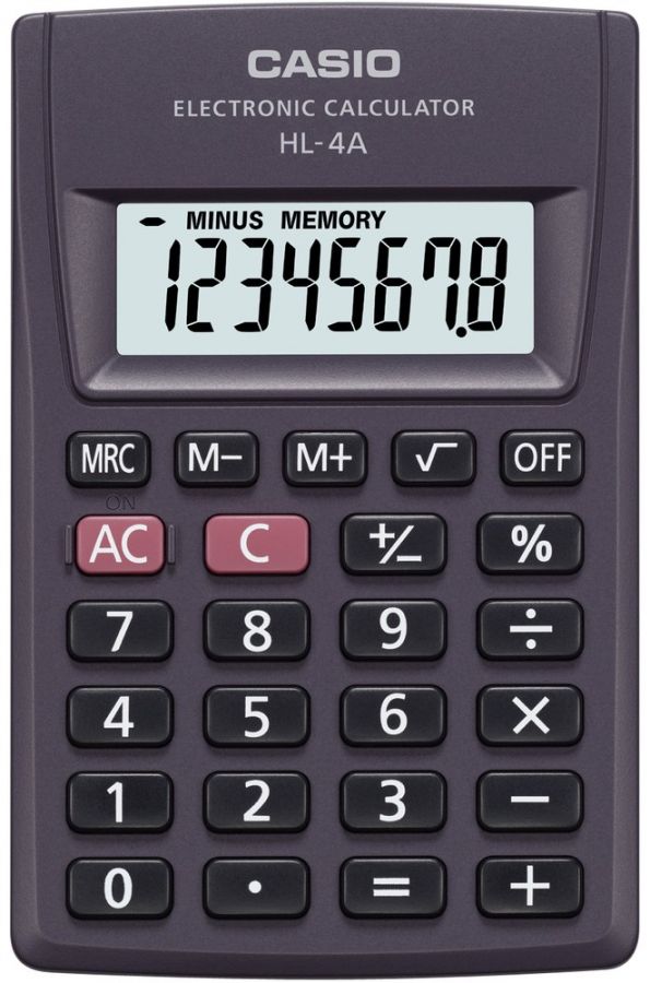 Kalkulačka s přehledným 8-mi místným displejem. S výpočtem procent a odmocniny.