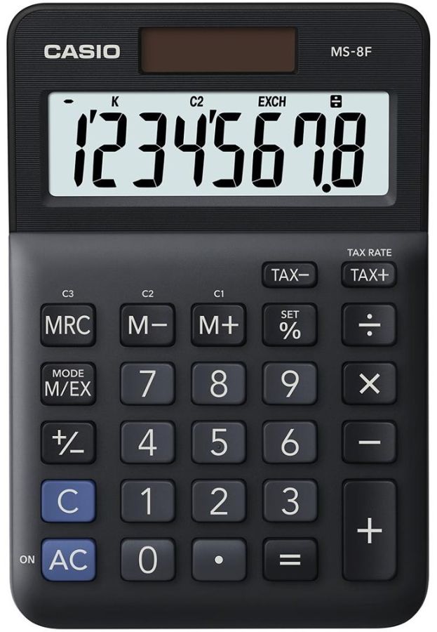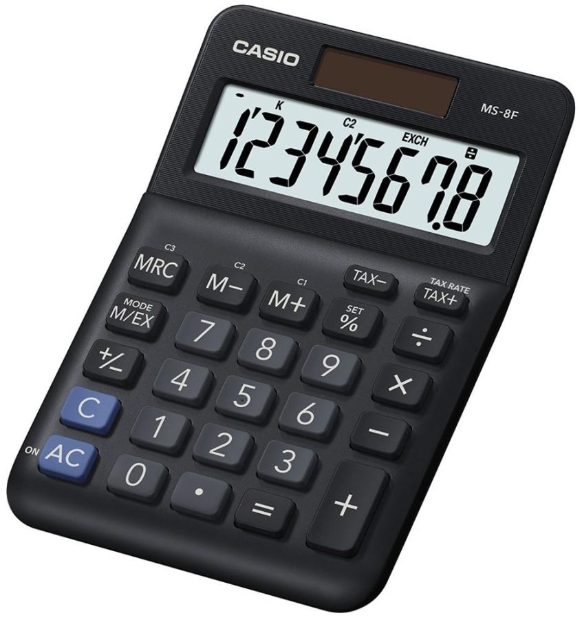 Kalkulačka s extra velkým 8-mi místným LCD displejem. S výpočtem DPH a procent včetně zisku. Má funkce a převody měn.