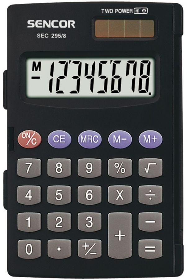 Kalkulačka s 8-mi místným LCD displejem, nezávislou pamětí a výpočtem odmocnin a procent.
