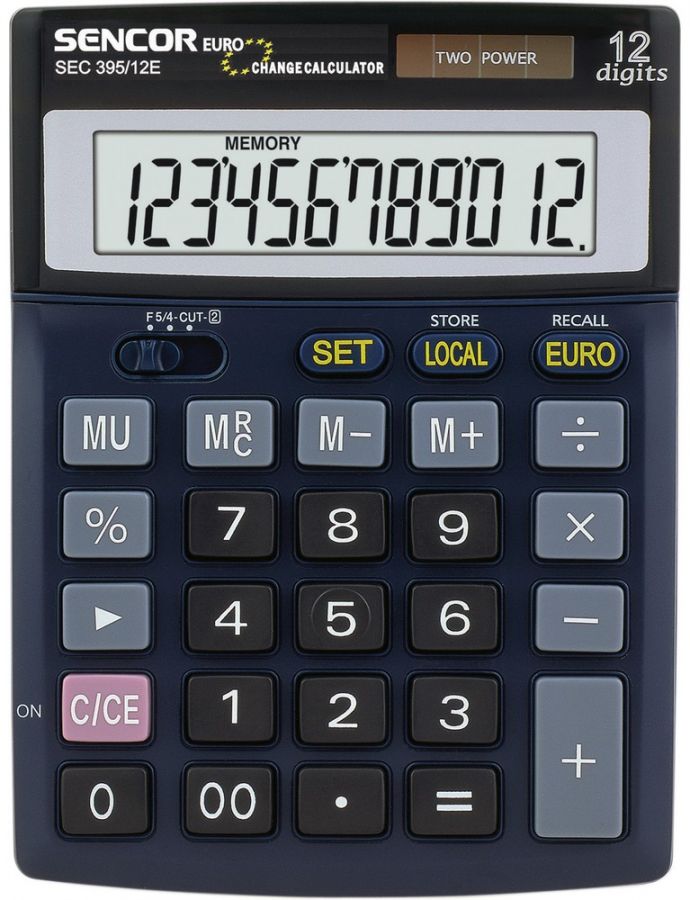 Kalkulačka s 12-ti místným displejem, nezávislou pamětí a výpočtem zisku a procent.