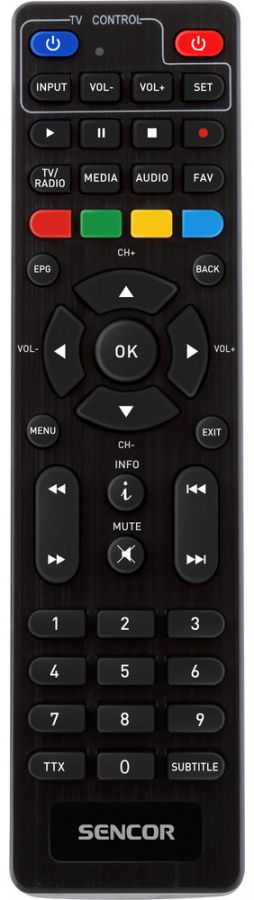 Učící se dálkový ovladač pro set-top boxy Sencor. Místo 2 ovladačů máte jen jeden, zvládne ovládat jak set-top box tak i televizi.