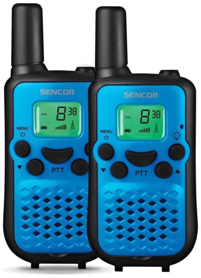 Vysílačky s 8 základními kanály, 38 sub kanály, 10 volacími tóny a svítilnou.