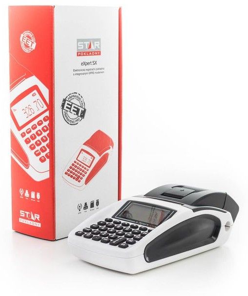 Registrační pokladna eXpert SX je mobilní přenosná pokladna s LCD displejem a numerickou klávesnicí. Vyrobena přímo pro EET. Ovládání je velice jednoduché, podobné jako na běžné kalkulačce s více funkcemi. Pokladna je vhodná pro všechny typy podnikání, jakou jsou malé obchody, kadeřnictví, kurýrní služby a podobně.