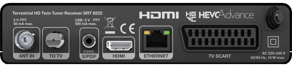 - Připojení: ANT IN, TO TV,TV SCART, S/PDIF coaxial, HDMI, RJ-45 Ethernet, USB port