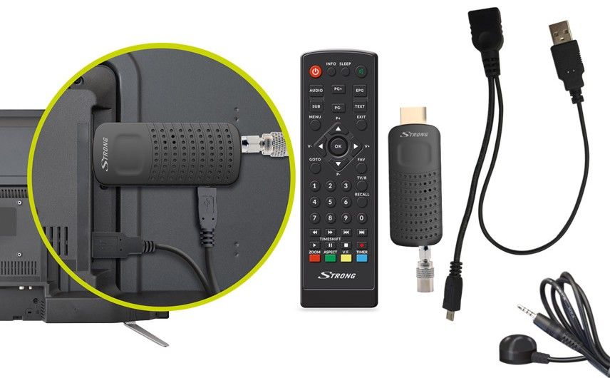 - DVB-T2 přijímač kapesní velikosti pro skrytí za televizor