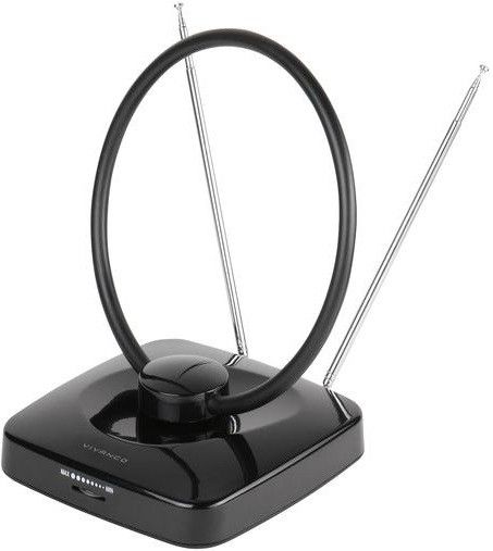 Pokojová DVB-T2/T anténa s UHF frekvenčním pásmem do 790 MHz. Striktní omezení zesilovacího výkonu pro aktivní antény
