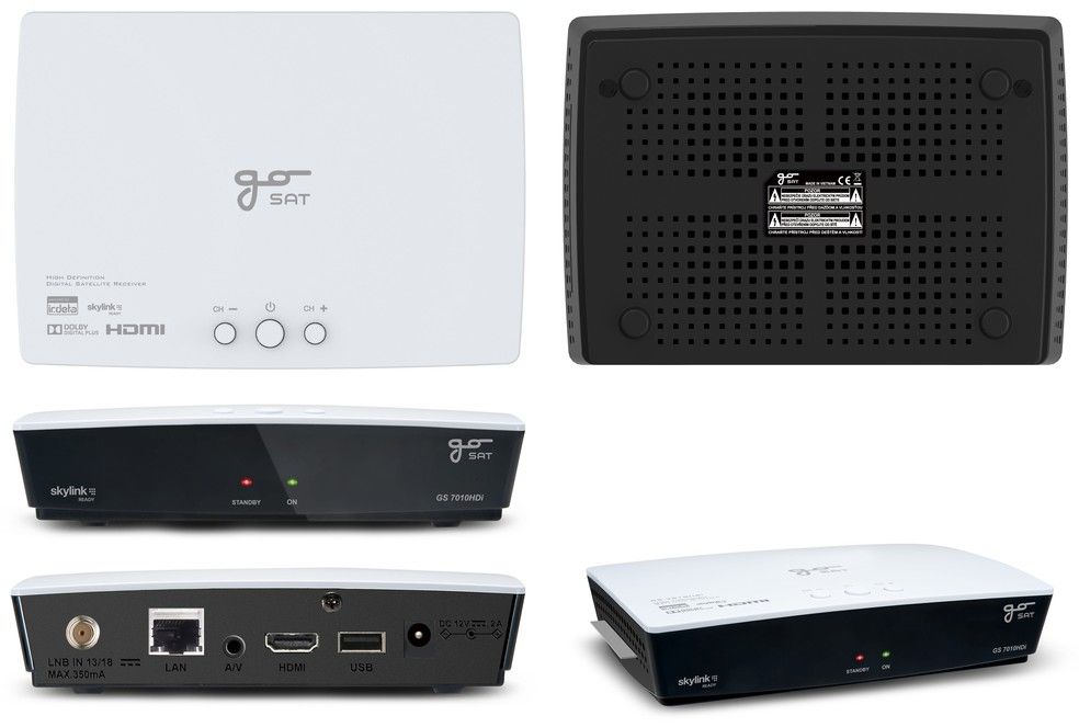 Další přijímač GoSAT certifikovaný podle poslední specifikace (r2015) Skylink Ready. Přijímač umí automaticky vyhledat frekvenci Skylink TP. Přijímač používá špičkový čip Broadcom - Made in USA. Díky FastScan a Skylink aktualizace má uživatel volbu mezi dvěma způsoby aktualizace seznamu kanálů - změny programů už nebudou noční můrou. Přijímač odhalí změny programů a sám je doladí, případně přejmenuje. Zabudovaná čtečka karet Irdeto umožňuje v přijímači používat karty Irdeto a také karty ICE operátorů Skylink a Freesat. Intuitivní a graficky vydařené menu s průvodcem instalací vám usnadní používáni. Menu je v českém i slovenském jazyce (+ angličtina, němčina). Přístroj má HDMI konektor a také analogový výstup pro starší typy televizorů. Přístroj podporuje funkci HDMI CEC - dokáže zapnout/vypnout TV, případně automaticky přepnout požadovaný vstup na TV. Přijímač disponuje funkcí PVR – nahrávání TV pořadů na externí hard disk, který lze k přístroji připojit pomocí USB konektoru na zadním panelu přijímače. Rozšířené možnosti rodičovského zámků Vám umožní široké nastavení dle vašich potřeb a ochrání tak vaše děti před nevhodným obsahem. LAN konektor pro připojení k internetu zpřístupní RSS zprávy.