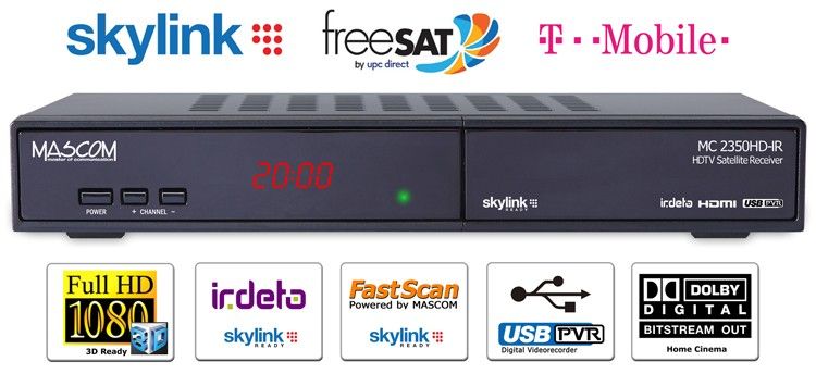 HD satelitní přijímač s dekodérem pro příjem Skylink a Freesat. Má vestavěný USB viderorekordér a funkci FastScan pro automatickou aktualizaci programů Skylink bez přelaďování.