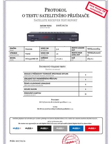 HD digitální satelitní přijímač plně kompatibilní se standardem DVB, umožňuje příjem vysílání ve standartním (SD) i vysokém rozlišení (HD). Přijímač je vybaven vestavěným dekodérem Irdeto (Skylink Ready) a USB digitálním videorekordérem. Vestavěný dekodér Irdeto zaručuje bezpečný příjem programů kódovaných v systému Irdeto. Funkce FastScan zaručuje automatickou aktualizaci programů Skylink bez ručního přelaďování. V paměti lze uložit až 4000 programů satelitního vysílání. Seznam programů podporuje vytváření seznamů oblíbených programů a jejich editaci. Přijímač podporuje instalaci nových verzí software přímo z vysílání (OTA upgrade).