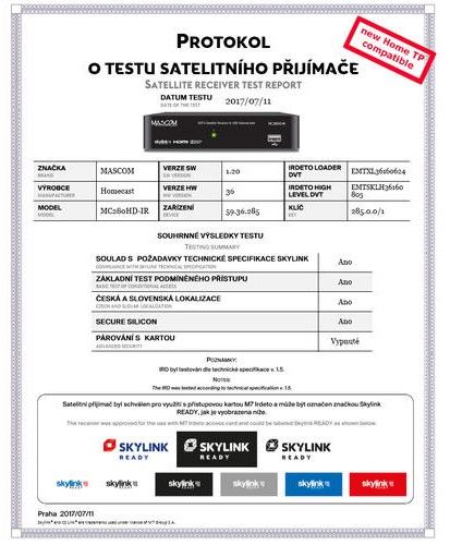 - Certifikát Skylink Ready pro Irdeto karty Skylink