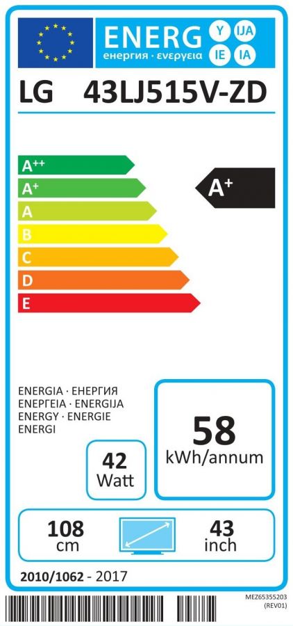 Televize LED, úhlopříčka 108cm, Full HD, True Motion 100 (50Hz), DCI 80%, DVB-T2/S2/C, H.265/HEVC, 2x HDMI, 1x USB, CI+, USB nahrávání, Game, VESA, repro 10W, Energetická třída A+