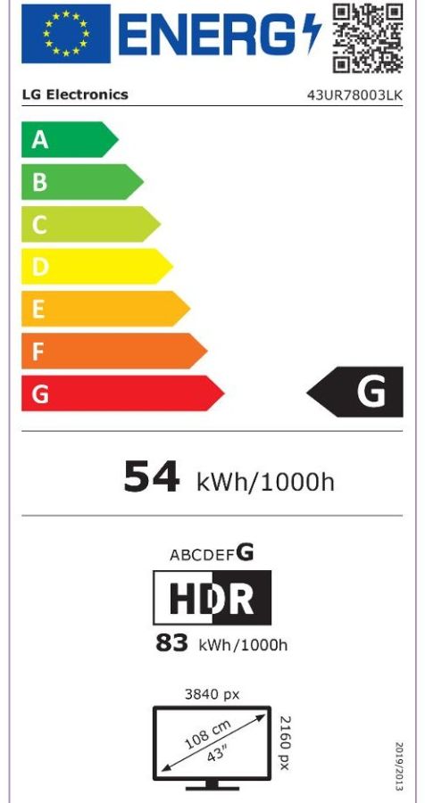 Televize SMART LED, úhlopříčka 108cm, 4K Ultra HD, DVB-T2/S2/C, H.265/HEVC, 3x HDMI, 2x USB, CI+, LAN, WiFi, DLNA, HbbTV, web prohlížeč, energetická třída G.