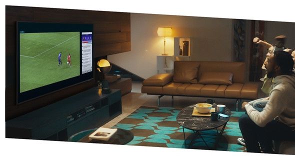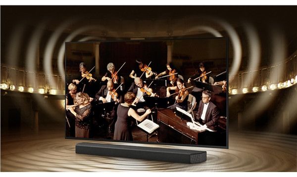 Obklopte se zvukem z televizoru a soundbaru, které jsou harmonicky sladěny. Q-Symphony umožňuje, aby reproduktory TV a soundbar fungovaly současně pro ještě lepší prostorový efekt bez ztlumení reproduktorů TV.