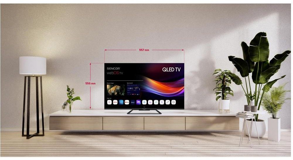 Televize QLED, úhlopříčka 108cm, UHD, DVB-T2/S2/C, H.265/HEVC, 3x HDMI, 2x USB, AV vstup, CI+, HbbTV, nahrávání na disk, přehrávání z disku (2x USB port), VESA, Energetická třída F.