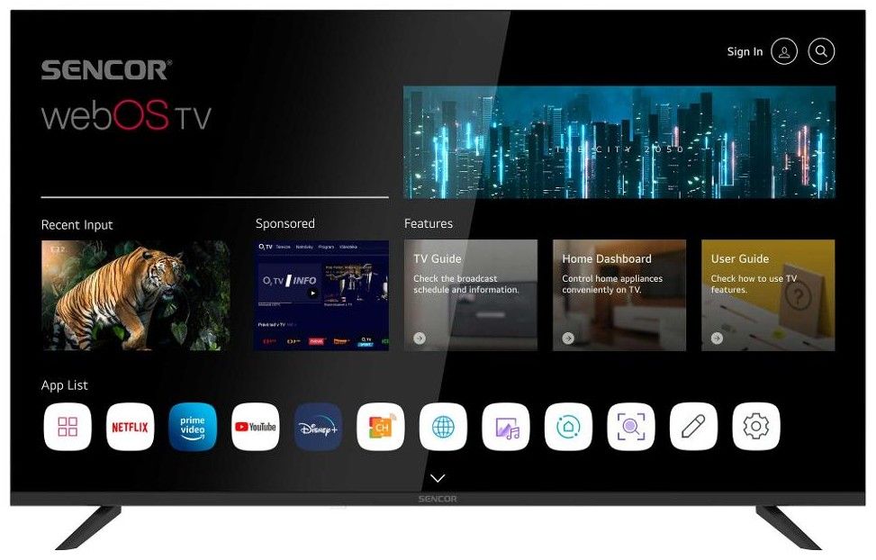 Systém WebOS, zkušenostmi ověřený operační systém vyvinutý společností LG, je velice uživatelsky komfortní, svižný a intuitivní. Pokud jde o zastoupení aplikací, ty nejdůležitější v tomto operačním systému nechybí. Rovněž máte přístup do filmoték např. HBO MAX, DISNEY+, Netflix či Amazon Prime video a nechybí ani přístup ke službám IPTV poskytovatelů. Systém běží na čtyř jádrovém procesoru ARM Cortex.