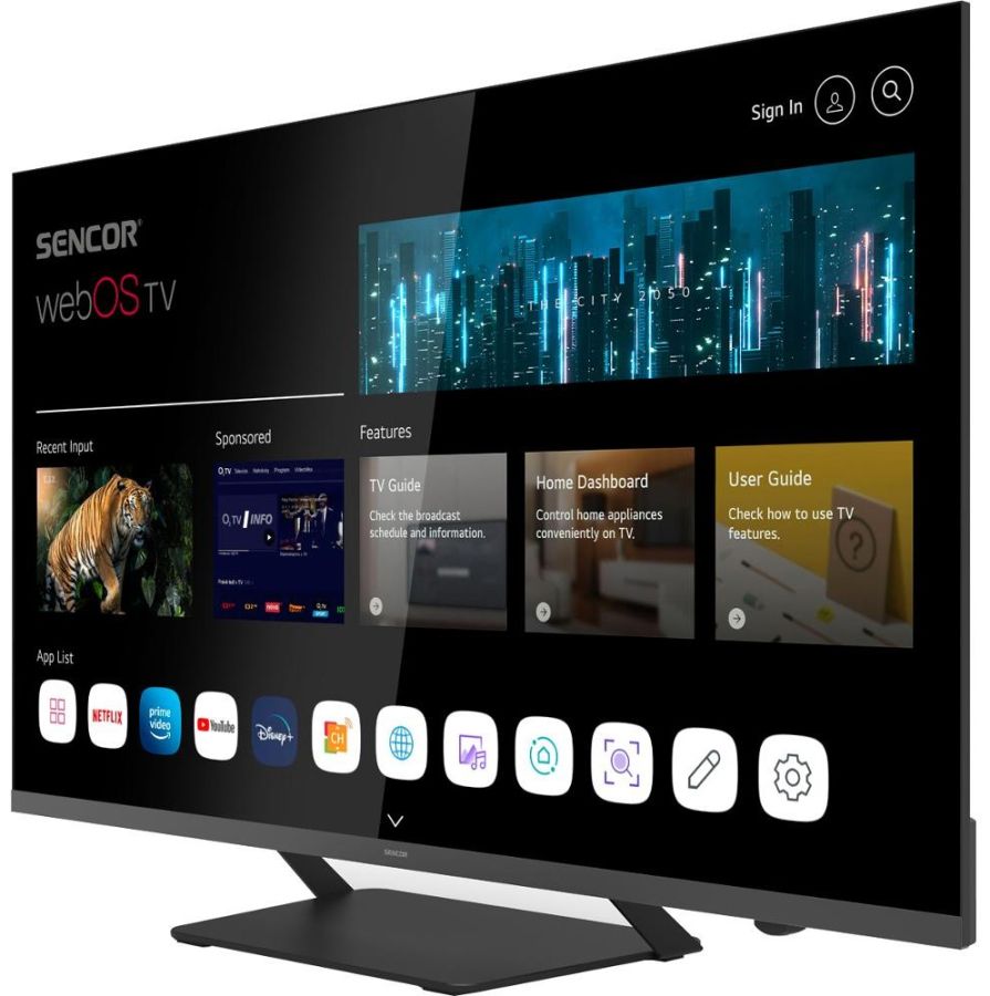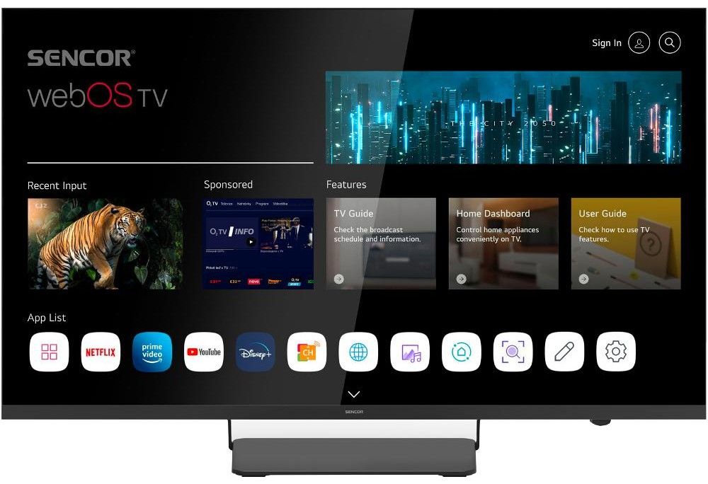 Systém WebOS, zkušenostmi ověřený operační systém vyvinutý společností LG, je velice uživatelsky komfortní, svižný a intuitivní. Pokud jde o zastoupení aplikací, ty nejdůležitější v tomto operačním systému nechybí. Rovněž máte přístup do filmoték Netflix či Amazon Prime video a nechybí ani přístup ke službám IPTV poskytovatelů. Systém běží na čtyř jádrovém procesoru ARM Cortex.