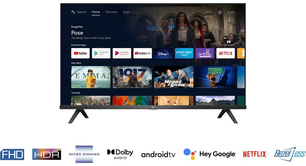 TCL Android TV umožňují neomezený obsah a vždy v nejvyšší kvalitě: Netflix, Disney+, Amazon Prime, YouTube, HBO GO, Spotify, Twitch, Kodi, Plex, filmy Google play, Hulu, Rakuten a mnoho dalších…
