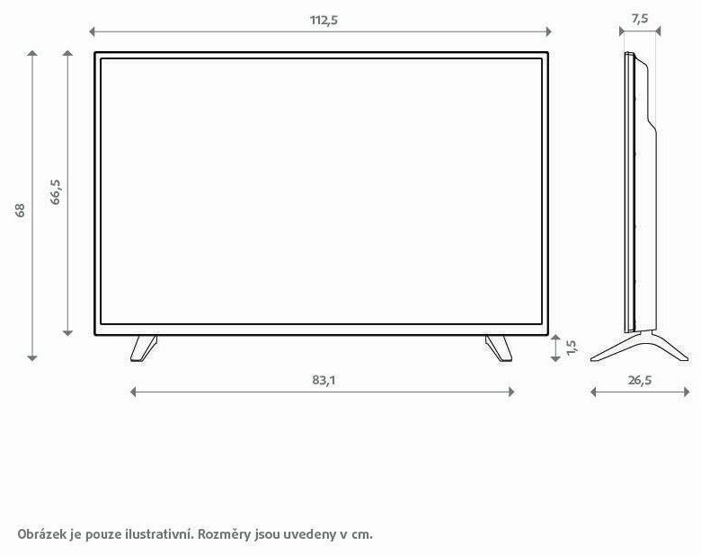 Televize UHD / 4K (3840 x 2160), úhlopříčka 126 cm, DVB-C/T/T2 (H.265), 1700Hz PPI, 3x HDMI, 2x USB, Cl+, LAN, HbbTV.