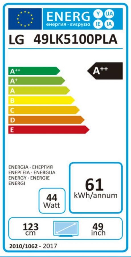 Televize LED s rozlišením Full HD (1920x1080 px), úhlopříčka 49"/123 cm, technologie 2K upscaler, Virtual Surround, index kvality obrazu 50, typ tuneru DVB-C/T/T2/S/S2, Energetická třída A++