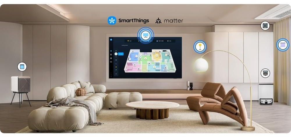 S integrovaným SmartThings Hub snadno propojíš a přizpůsobíš si všechna chytrá zařízení kompatibilní se SmartThings. Ovládej celou domácnost ze své TV.