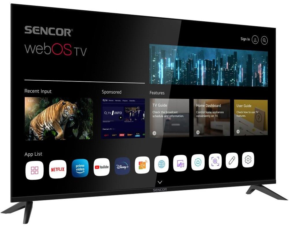 Systém WebOS, zkušenostmi ověřený operační systém vyvinutý společností LG, je velice uživatelsky komfortní, svižný a intuitivní. Pokud jde o zastoupení aplikací, ty nejdůležitější v tomto operačním systému nechybí. Rovněž máte přístup do filmoték Netflix či Amazon Prime video a nechybí ani přístup ke službám IPTV poskytovatelů. Systém běží na čtyř jádrovém procesoru ARM Cortex.
