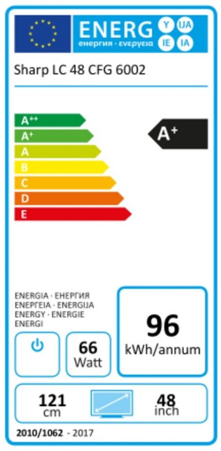 - Spotřeba (třída A+): 66 W, pohotovostní režim < 0,5 W