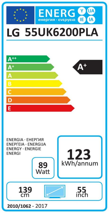 Televize SMART LED, úhlopříčka 139cm, 4K Ultra HD, HDR10, True Motion 100 (50Hz), DVB-T2/S2/C, H.265/HEVC, 3x HDMI, 2x USB, CI+, LAN, WiFi, DLNA, Bluetooth, HbbTV, Miracast, WiDi, web prohlížeč, magické spojení s mobilem, USB nahrávání, webOS Smart TV, VESA, Energetická třída A