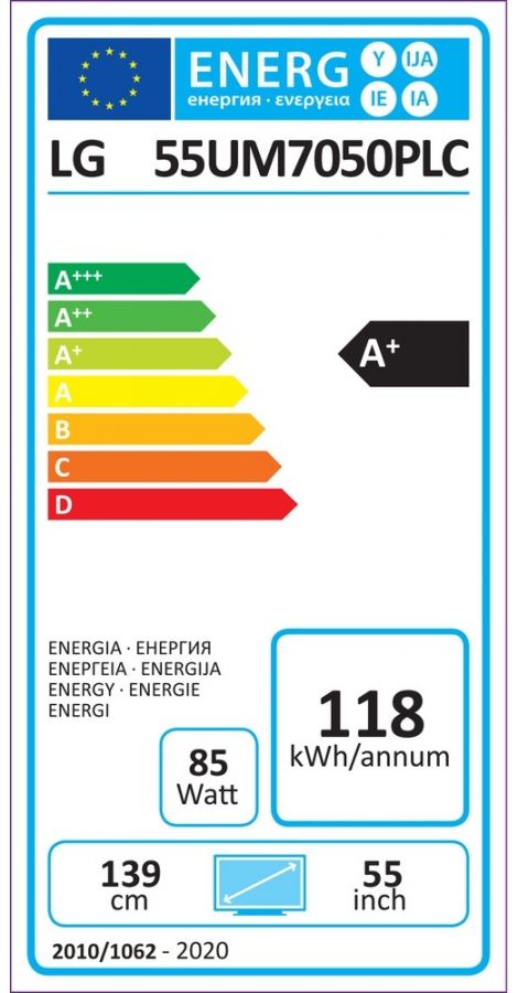 Televize SMART LED, úhlopříčka 139cm, 4K Ultra HD, DVB-T2/S2/C, H.265/HEVC, 3x HDMI, 2x USB, CI+, LAN, WiFi, DLNA, Miracast, webOS Smart TV, repro 20W, WESA, Energetická třída A+