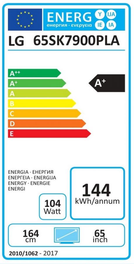 Televize SMART LED, úhlopříčka 164cm, 4K Ultra HD, 4K Cinema HDR, True Motion 200 (100Hz), DVB-T2/S2/C, H.265/HEVC, 4x HDMI, 2x USB, CI+, LAN, WiFi, DLNA, Bluetooth, HbbTV, Miracast, WiDi, web prohlížeč, magické spojení s mobilem, USB nahrávání, webOS Smart TV, VESAB, repro 20W, Energetická třída A+