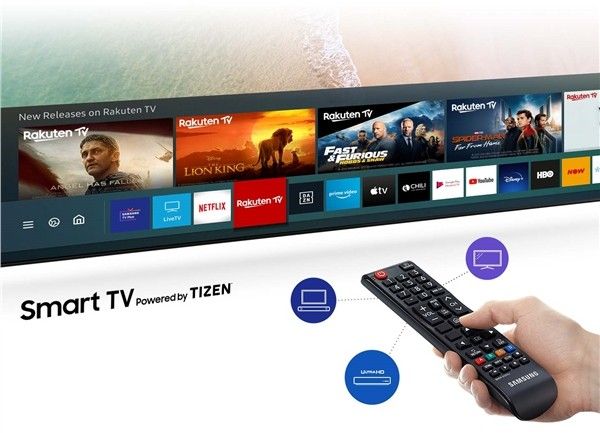 Televize SMART LED, úhlopříčka 127cm, 4K Ultra HD, HDR10+, PQI 2000 (50Hz), 4K UHD Dimming, DVB-T2/S2/C, H.265/HEVC, 2x HDMI, 1x USB, 1x LAN, 1x optický výstup, 1x CI+, WiFi, HbbTV 2.0, OS Tizen, párování s mobilním zařízením, Game Mode, Steam Link, HBO GO, Voyo, NETFLIX, web prohlížeč, Smart ovladač, VESA, repro 20W, Energetická třída A