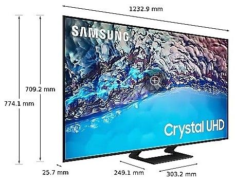 Televize SMART LED, úhlopříčka 138cm, 4K Ultra HD, HDR10+, PQI 2200, Crystal Processor 4K, DVB-T2/S2/C, H.265/HEVC, 3x HDMI, 3x USB, 1x LAN, 1x optický výstup, 1x CI+, WiFi, OS Tizen, Game Mode, Voyo, HBO MAX, Netflix, Energetická třída G