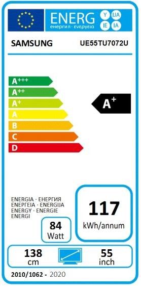 Televize SMART LED, úhlopříčka 138cm, 4K Smart TV, HDR10+, PQI 2000, 4K Ultra HD, DVB-T2/S2/C, H.265/HEVC, 2x HDMI, 1x USB, 1x LAN, 1x optický výstup, 1x CI+, WiFi, HbbTV 2.0, OS Tizen, párování s mobilním zařízením, Game Mode, Steam Link, HBO GO, Voyo, NETFLIX, repro 20W, energetická třída A+