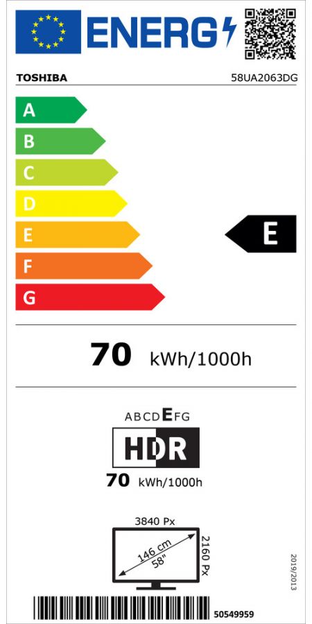 Televize ANDROID UHD LED, úhlopříčka 147 cm, UHD, TPQ 1900, DVB-T2/S2/C, H.265/HEVC, Wi-Fi, 4x HDMI, 2x USB, DLNA, HbbTV, Netflix 4K, VESA 200 x 200 mm, repro 20W, energetická třída E
