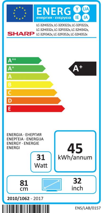 - Spotřeba (třída A+): 31 W, pohotovostní < 0,5 W