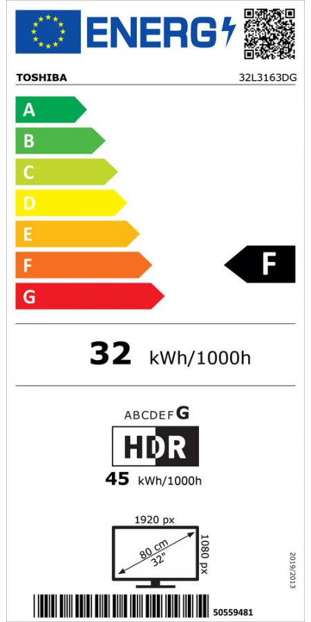 Televize SMART FULL HD LED, úhlopříčka 80 cm, D-LED, TPQ 1300, DVB-T2/S2/C, H.265/HEVC, 2x HDMI, 1x USB, USB nahrávání, Toshiba Smart portál, Netflix, HbbTV, VESA 75x75 mm, repro 12W, energetická třída F.