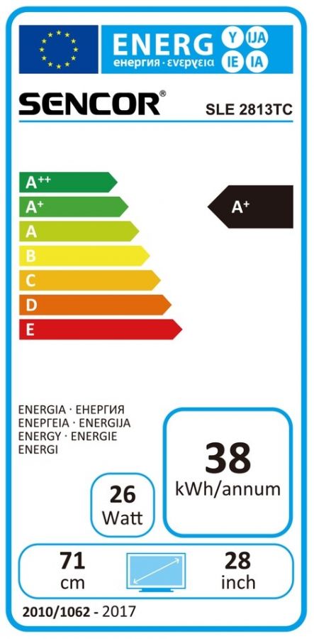 - Energetická účinnost: 42 W/<0,5 W v pohotovostním režimu