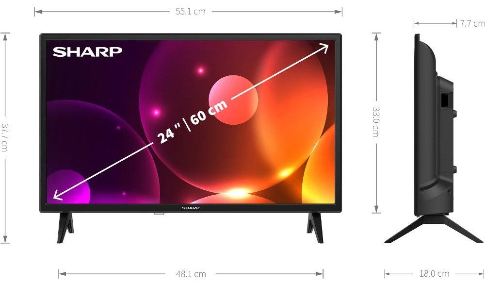 Televize LED, úhlopříčka 60cm, HD SMART LED, DVB-T2/C, H.265/HEVC, 3x HDMI, 2x USB, VESA, repro 2 x 5W.