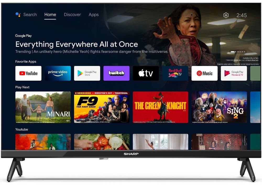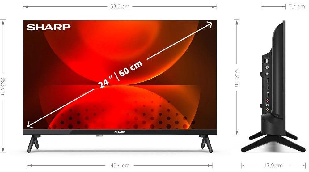 Televize Android LED, úhlopříčka 60cm, HD Ready, DVB-T2/C, H.265/HEVC, 3x HDMI, 2x USB, CI+, VESA, repro 2x 3W