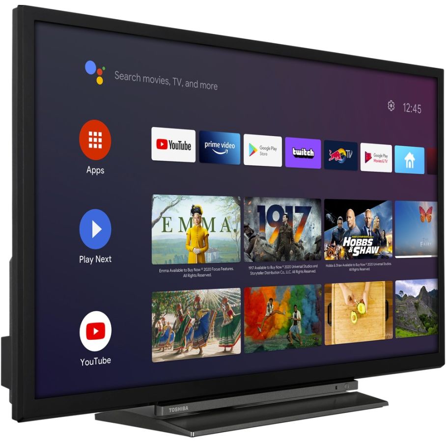 Televize ANDROID LED, úhlopříčka 60 cm, HD Ready, TPQ 1000, DVB-T2/S2/C, H.265/HEVC, 3x HDMI, 2x USB, VGA, CI+, Dolby Audio, nahrávání na USB (PVR), VESA, repro 2x 2,5W, Energetická třída F