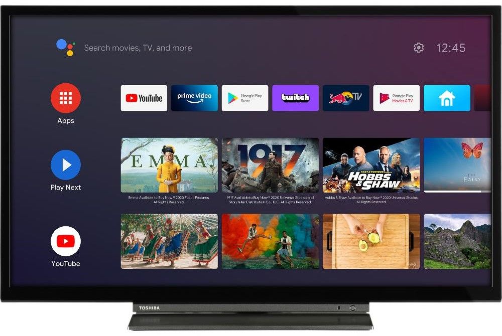 Televize LED, úhlopříčka 60 cm, HD Ready, TPQ 1000, DVB-T2/S2/C, H.265/HEVC, 3x HDMI, 2x USB, USB nahrávání, VESA 75x75 mm, repro 5W, energetická třída E.