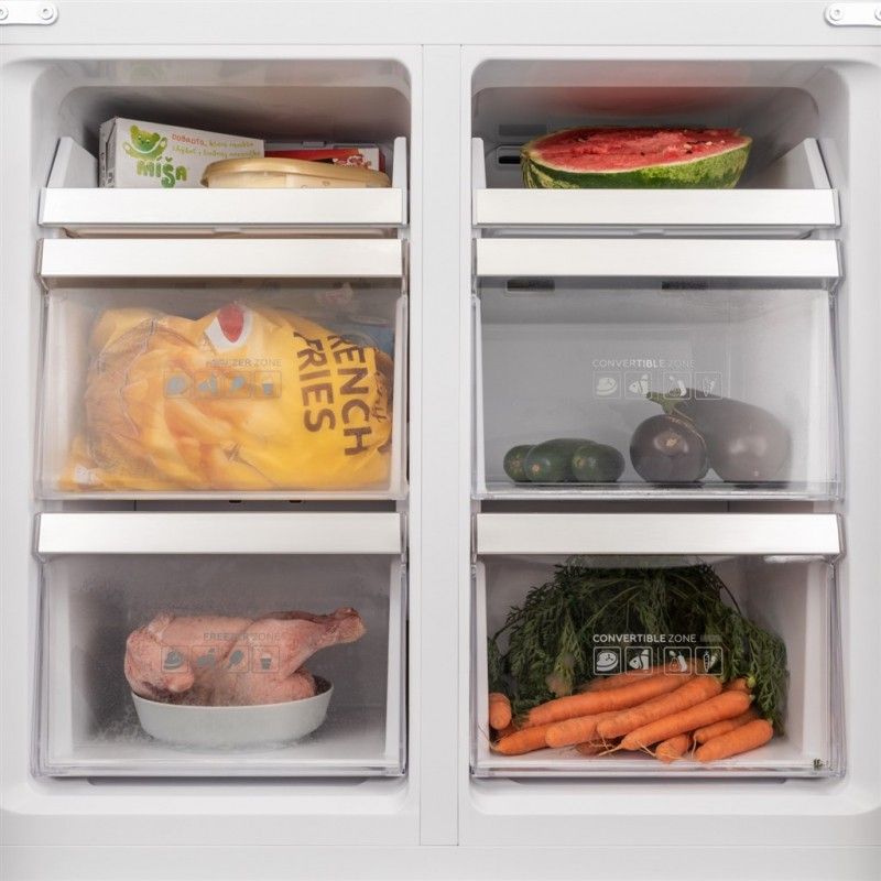 Přizpůsobte si lednici podle svého. Ve spodní části lednice najdete velkou konvertibilní zónu, kterou můžete využít jako klasický mrazák, jako nulovou zónu pro ideální skladování chlazeného masa a ryb nebo jako klasickou lednici, pokud vám nestačí místo v hlavní části.