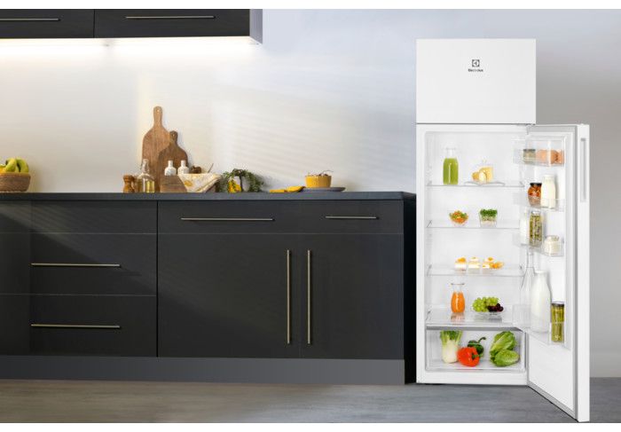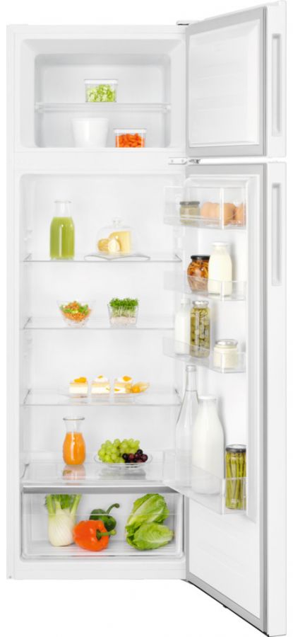 Kombinovaná chladnička s energetickou třídou F o celkovém užitném objemu 244 l. Objem chladničky 203 l a objem mrazničky 41 l.