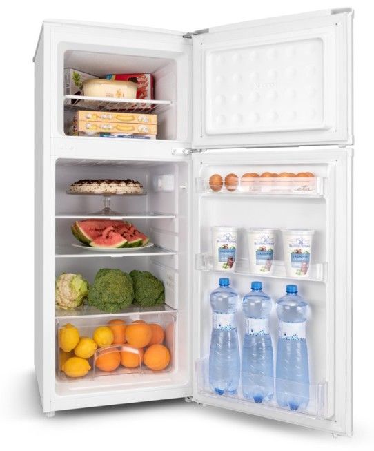 Chladnička s mrazákem nahoře o celkovém užitném objemu 151 l. Objem chladničky 112 a objem mrazničky 39 l.