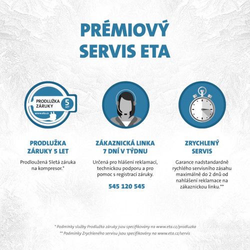 - (*) Podmínky služby Prodlužka záruky jsou specifikovány na www.prodluzka.eta.cz