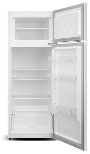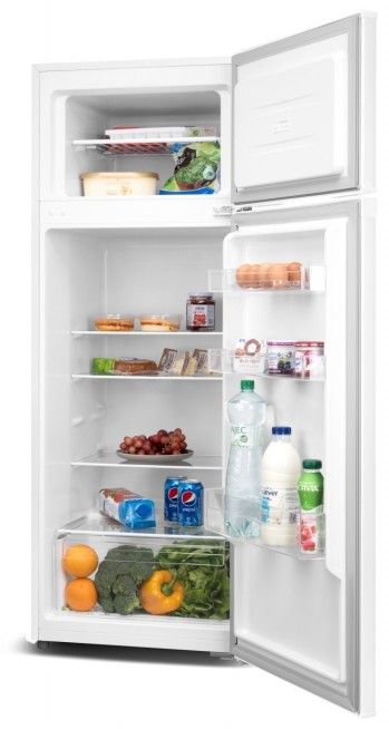 Chladnička s mrazákem nahoře s energetickou třídou E o celkovém užitném objemu 206 l. Objem chladničky 169 a objem mrazničky 37 l.