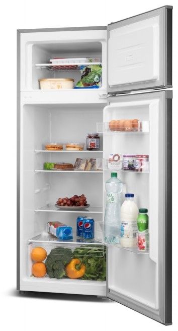 Chladnička s mrazákem nahoře o celkovém užitném objemu 206 l. Objem chladničky 169 l a objem mrazničky 37 l.