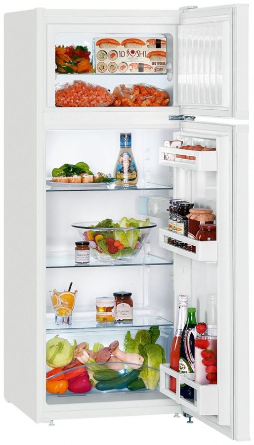 Chladnička s mrazákem nahoře s energetickou třídou A++ o celkovém užitném objemu 231 l. Objem chladničky 187 a objem mrazničky 44 l.