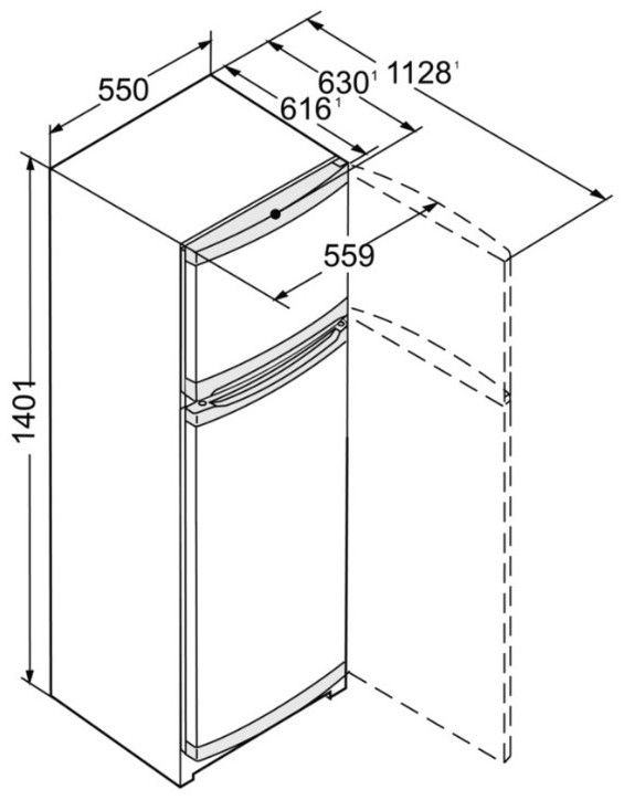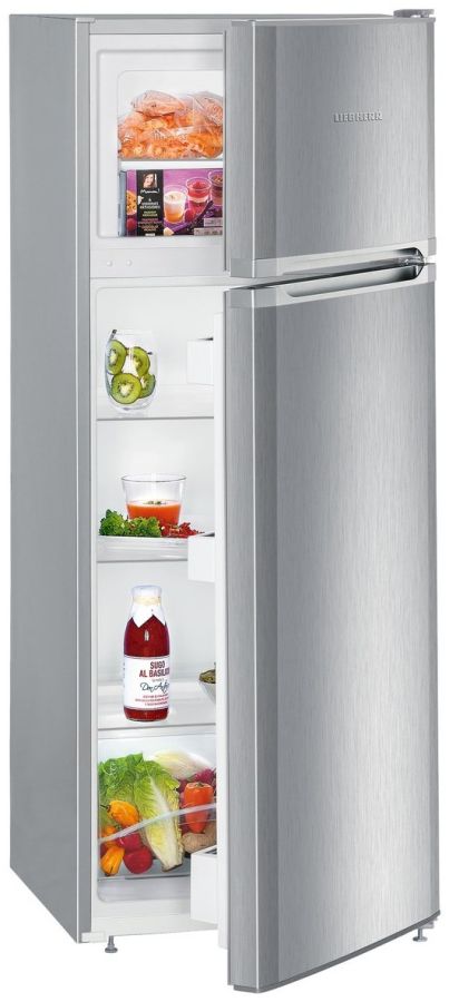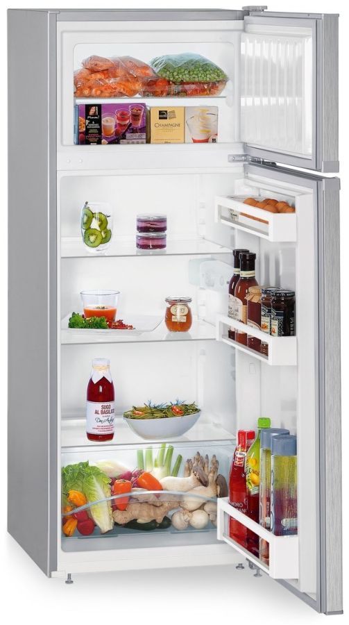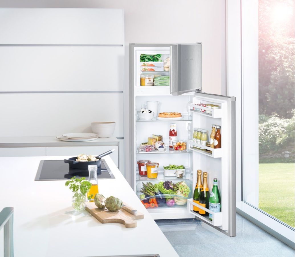 Chladnička s mrazákem nahoře o celkovém užitném objem 234 l. Objem chladničky 190 l a objem mrazničky 44 l.