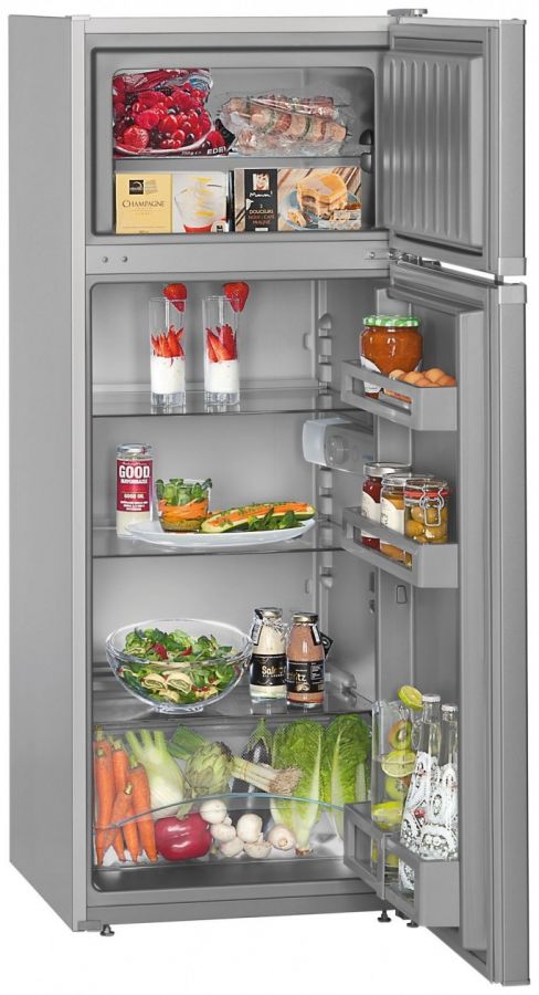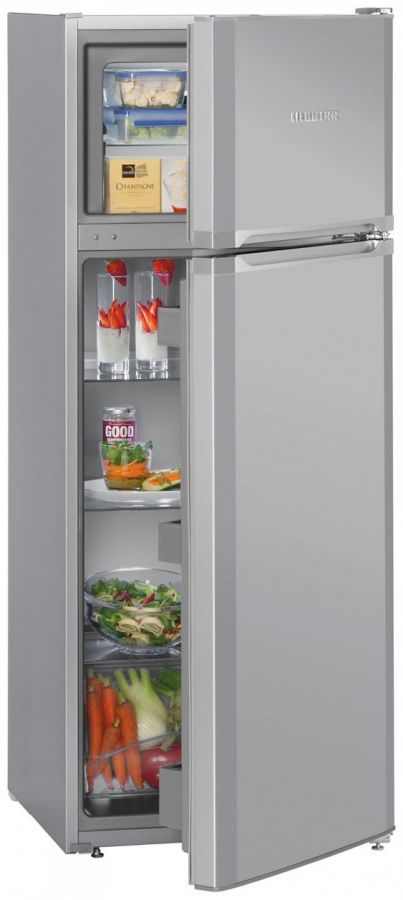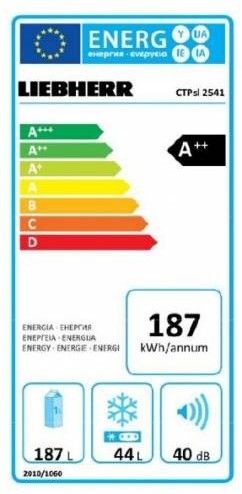 Chladnička s mrazákem nahoře s energetickou třídou A++ o celkovém užitném objemu 231 l. Objem chladničky 187 a objem mrazničky 44 l.