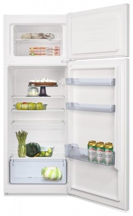 Chladnička s mrazákem nahoře o celkovém užitném objemu 206 l. Objem chladničky 169 l a objem mrazničky 37 l.